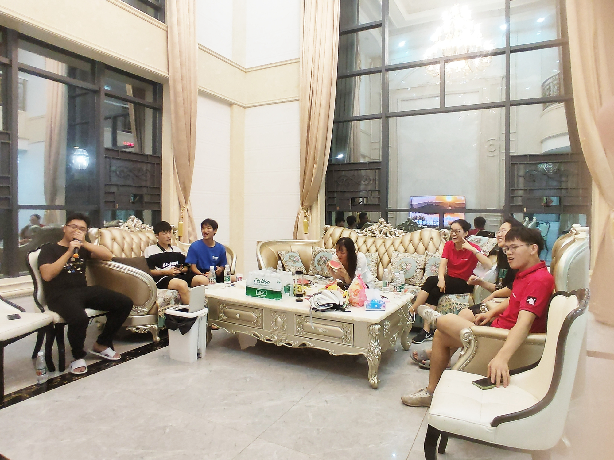 我們擁有一個大大的別墅房子。那里有懸空吊頂?shù)乃簟⒊领o古樸的茶桌,還有盡情搖擺的KTV和尚未踏足的棋牌室。燈光流動,大家敞開心扉,或深情吟唱,或靜靜聆聽,或吃茶談心聊工作,因為一切都有,所以一切都可!