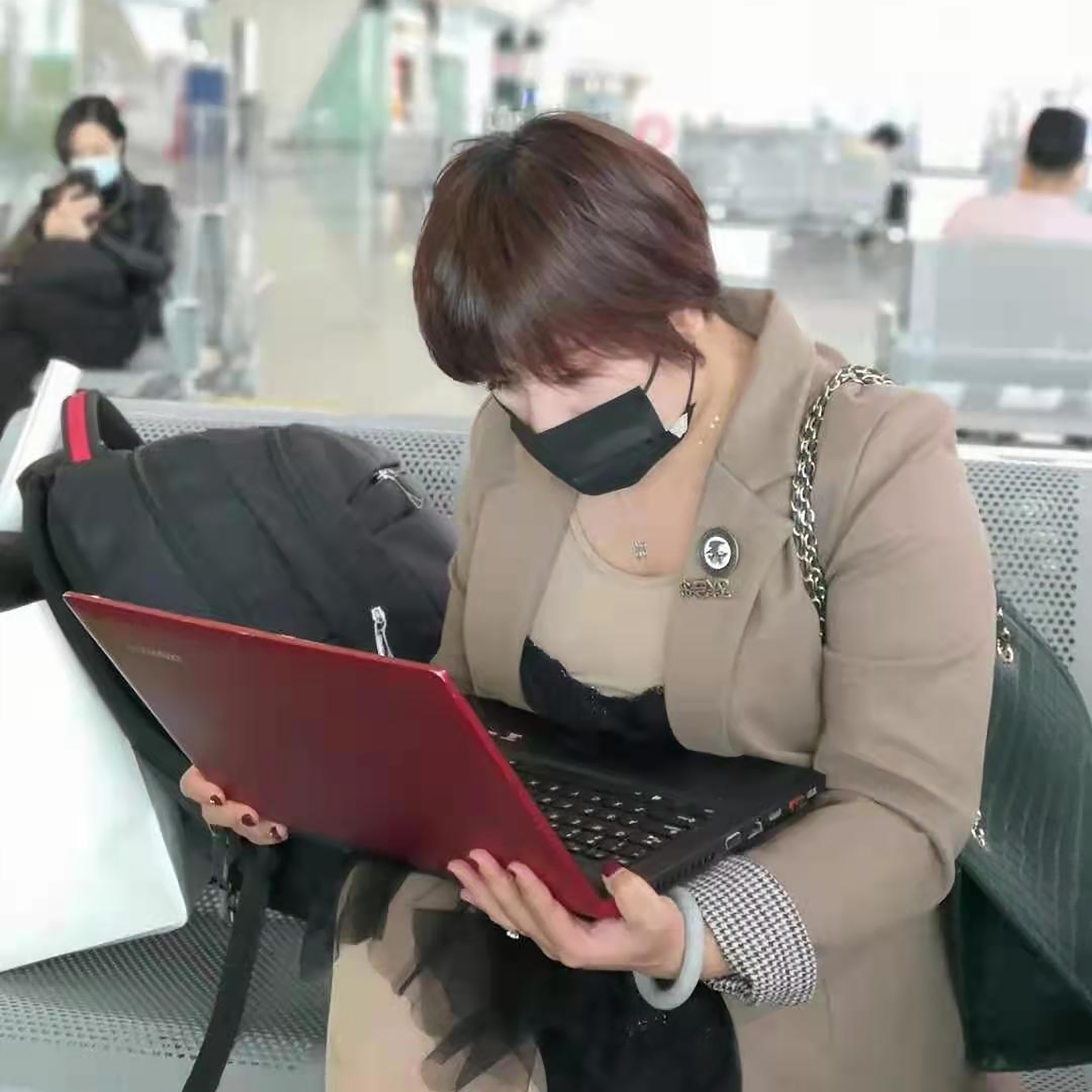 △在候車廳工作中的江經理
