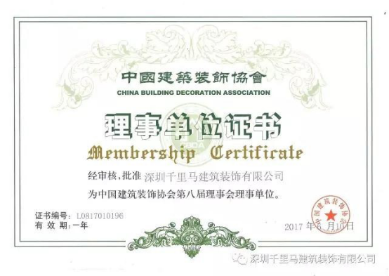 天道酬勤,有志者事竟成。在千里馬公司多年堅持下,6月,終于獲得了中國建筑裝飾協會的認可,成為新晉理事單位成員。